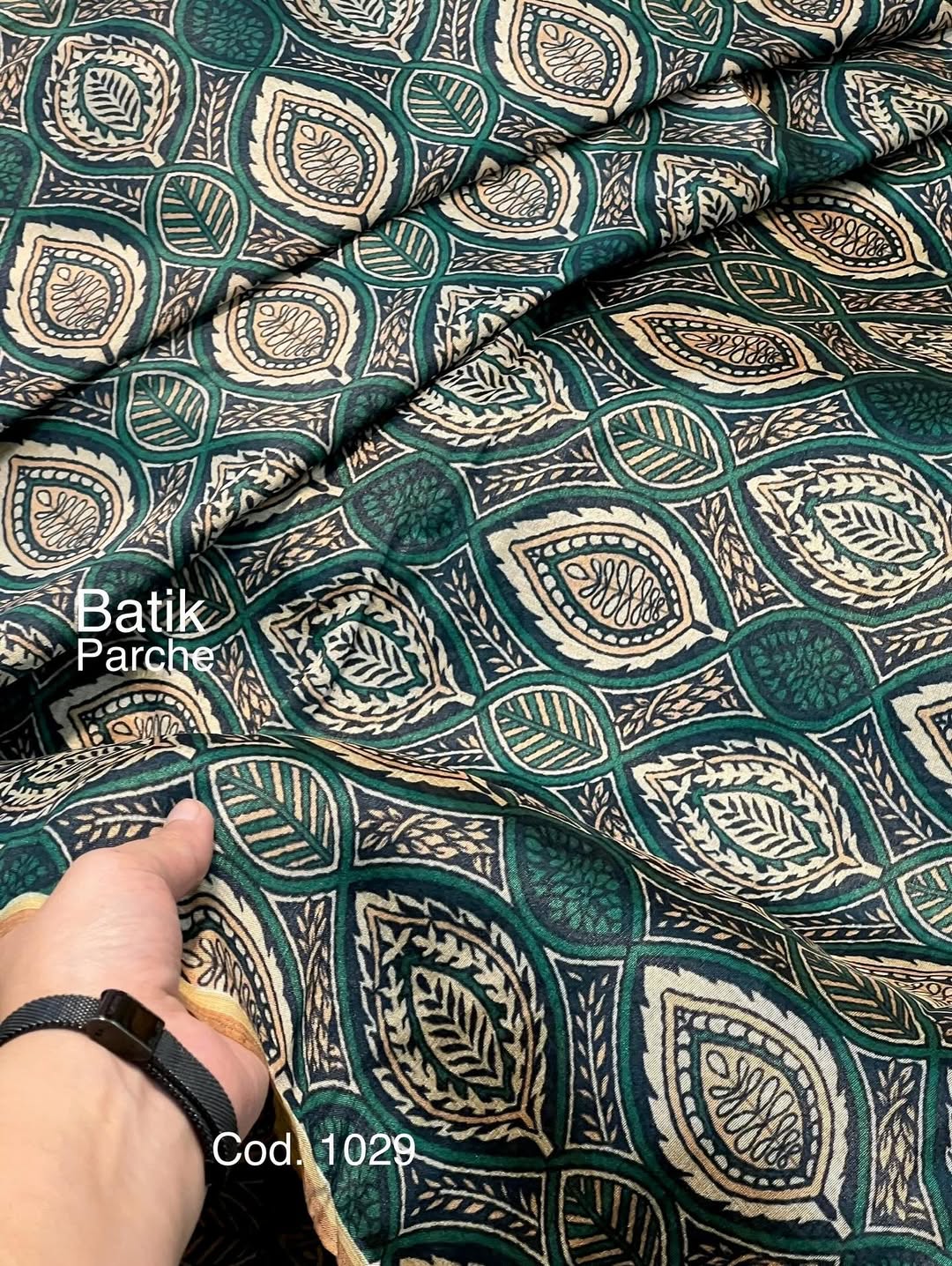 طرح روی پارچه با تکنیک باتیک اجرا شده.