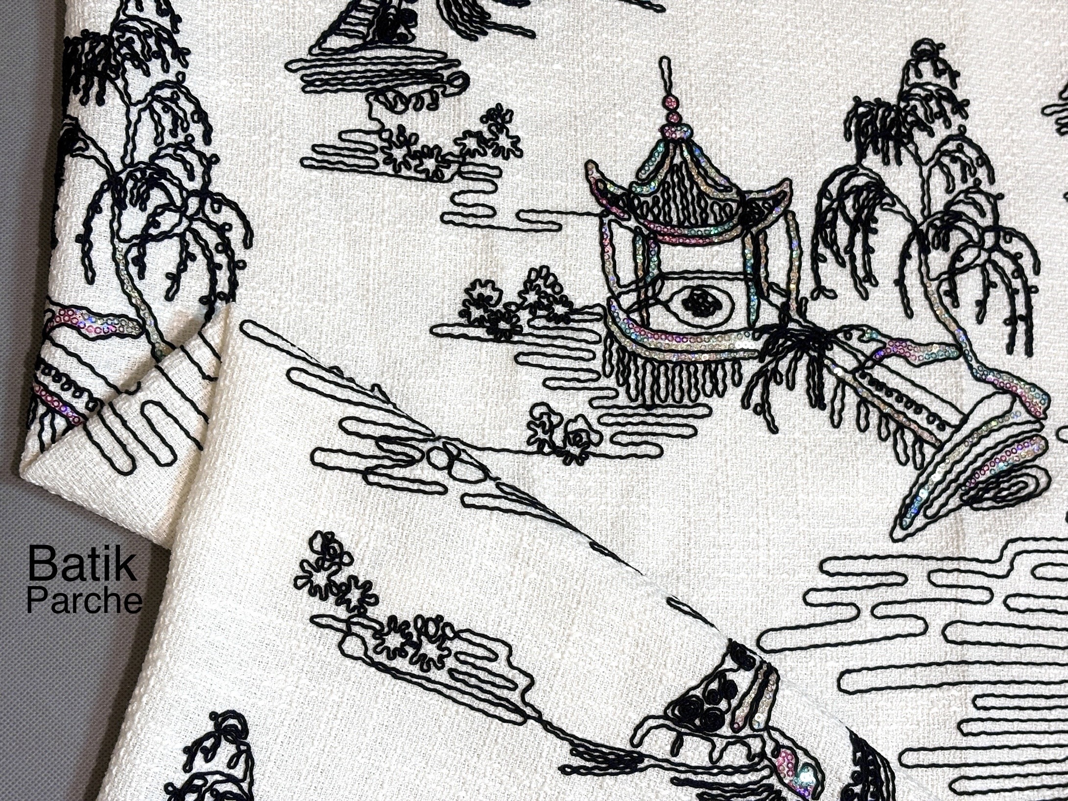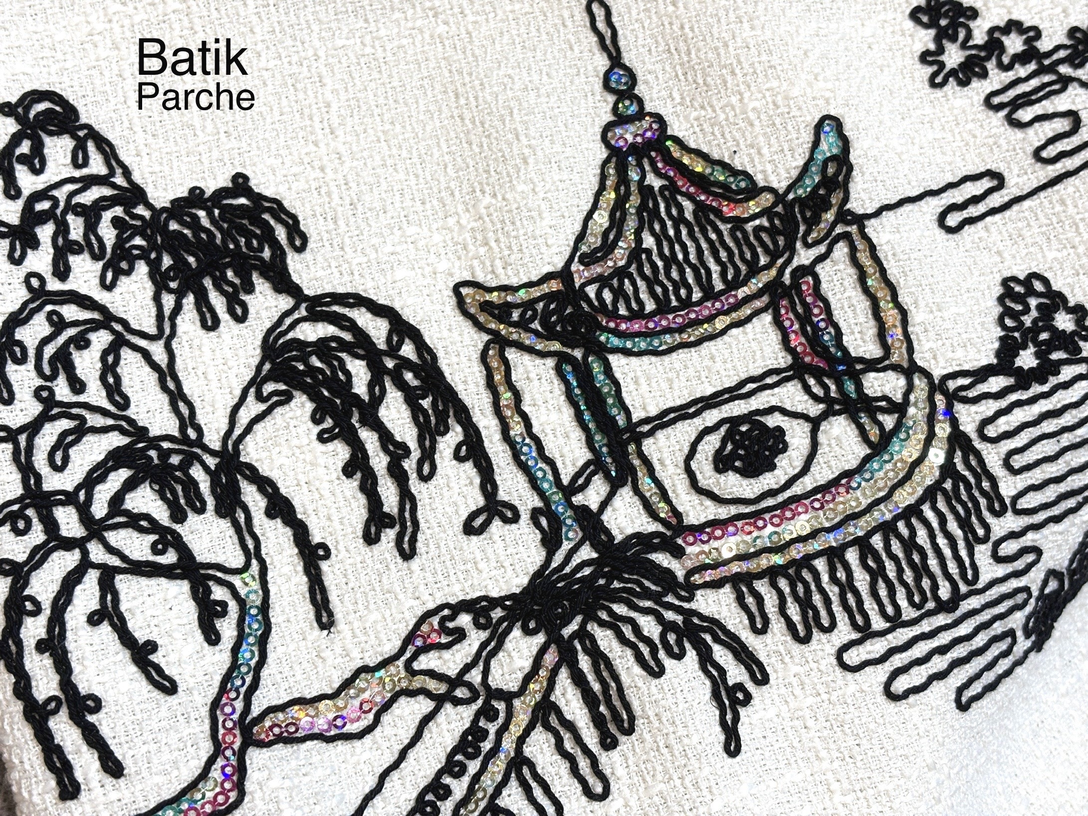 طرح روی پارچه سوزن دوزی شده.