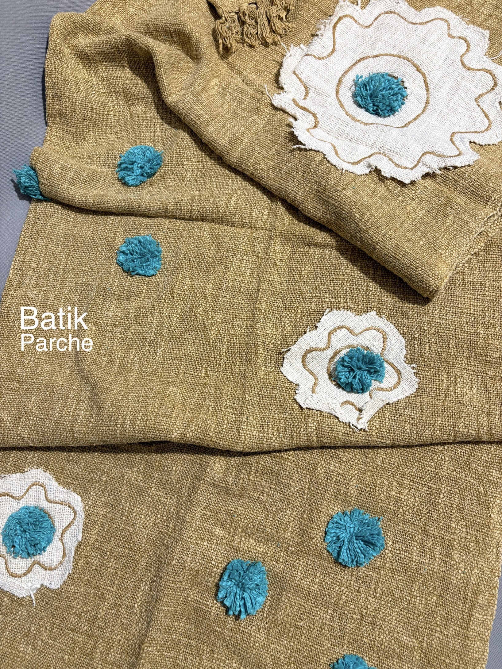این پارچهی دستساز با عرض ۱۳۵ و طول ۱۷۵ سانتیمتر از بافت نپالی الهام گرفته و دارای جنسی نرم و خوشفرم است که برای دوخت کت، پانچو و بامبرژکت بسیار مناسب میباشد. زمینهی رنگیِ کرم گرم آن با گلهای دستدوز و اپلیکههای فیروزهای ترکیب شده و حالوهوایی لطیف و در عینحال خاص ایجاد کرده است.