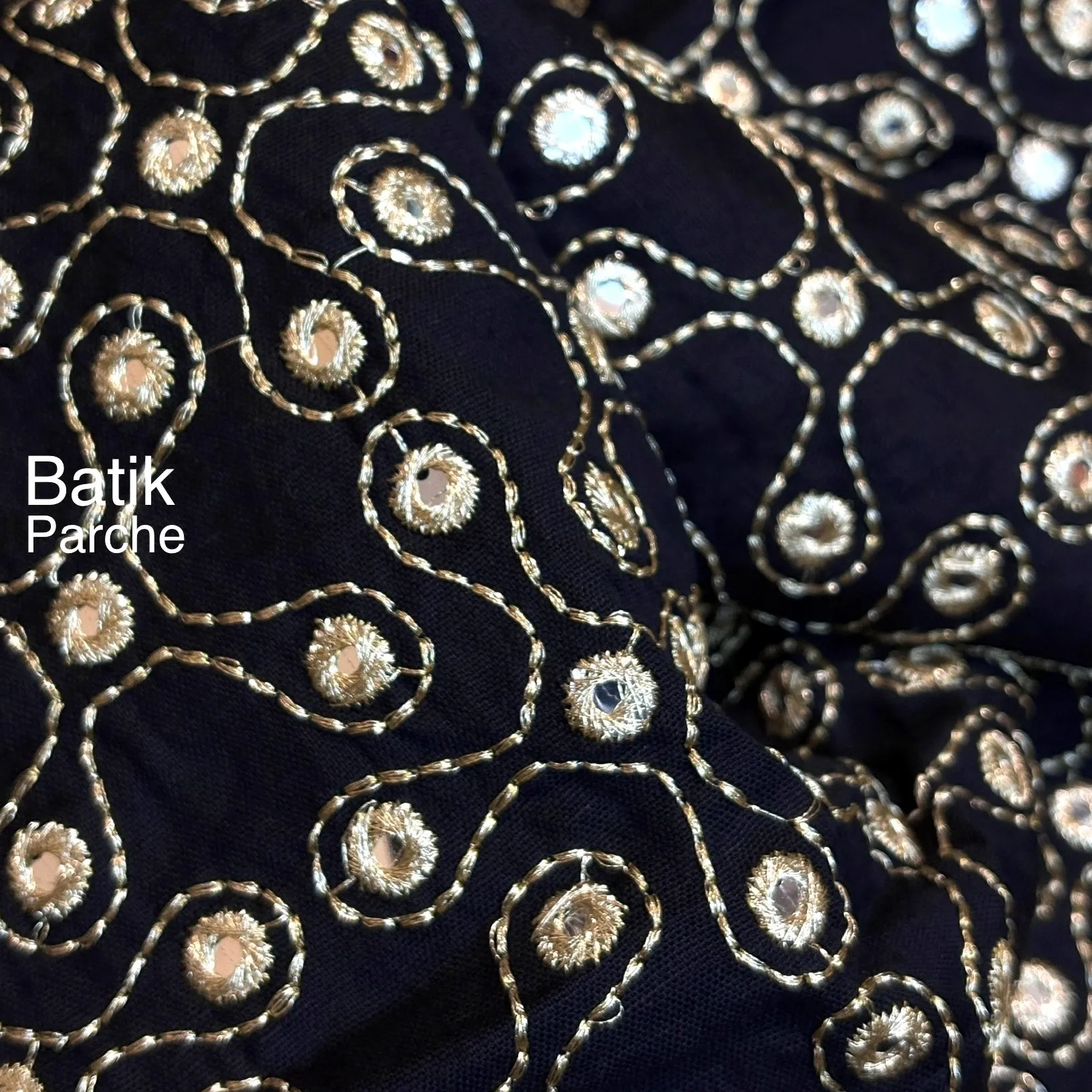 پارچه آینه دوزی و سرمه طلایی باتیک پارچه.